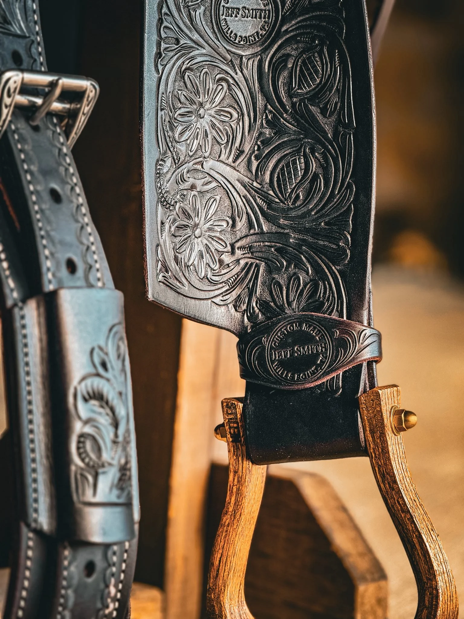 This gallery showcases some of the flashiest, highest-spec saddles created by JSCS — a true display of craftsmanship, tooling skill and the endless custom options available. From detailed hand-carving to bold colours, exotic inlays and intricate patterns, these saddles highlight what’s possible when creativity meets world-class workmanship. Use this collection as inspiration to explore styles, features and finishes, and to see the full potential behind your own custom design — whether you prefer something subtle, or something show-stopping.